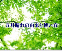 五月晴れと五月雨っていつ?由来と使い方を知らないと恥ずかしいかも? 公開日:2018年3月5日 雑談のネタ 5月の吹く風に匂いや香を感じませんか?「風薫る5月」の定型句もあるほどですから、爽やかな初夏の風が吹いてくれますよね?暑くもなく寒くもなく過ごしやすい時期で、新緑の香りも一番好きです。 ところで、五月晴れの意味や由来を知 […] 続きを読む